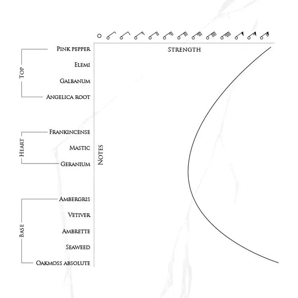 Base Notes: Ambergris, Vetiver, Ambrette, Seaweed, Oakmoss Absolute