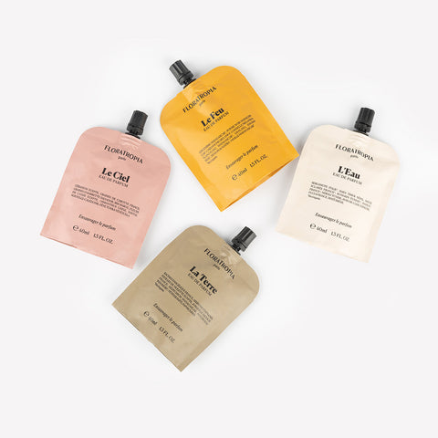 Petrochemical-free, etically-sourced, clean, and refillable, Floratropia aims at a new art of fragrance with a purpose: infuse a positive change in the world of perfume. With their unique, holistic approach to sustainability, the packaging is aimed at making a positive impact on living. The packaging is refillable and nomadic, with a low waste /low carbon footprint.